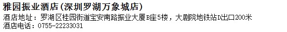 酒店地址:深圳 羅湖區 桂園街道寶安南路振業大廈B座5樓,大劇院地鐵站D出口200米