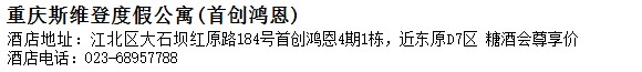 酒店地址:重慶 江北區 大石壩紅原路184號首創鴻恩4期1棟,近東原D7區 糖酒會尊享價
