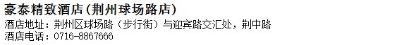酒店地址:荊州 荊州區 球場路(步行街)與迎賓路交匯處,荊中路