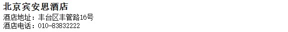酒店地址:北京 豐臺區 豐管路16號
