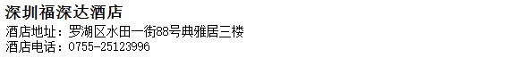 酒店地址:深圳 羅湖區 水田一街88號典雅居三樓