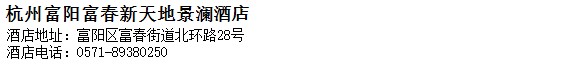 酒店地址:杭州 富陽區 富春街道北環路28號