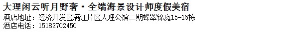 酒店地址:大理 經濟開發區滿江片區大理公館二期蝶翠錦庭15-16棟