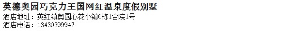 酒店地址:英德 英紅鎮奧園心花小鎮6棟1合院1號
