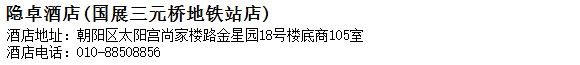 酒店地址:北京 朝陽區 太陽宮尚家樓路金星園18號樓底商105室