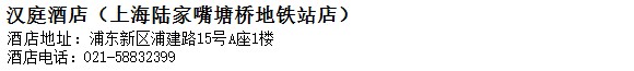 酒店地址:上海 浦東新區 浦建路15號A座1樓