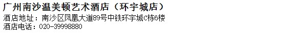 酒店地址:廣州 南沙區 鳳凰大道89號中鐵環宇城C棟6樓