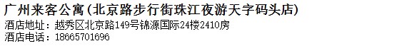 酒店地址:廣州 越秀區 北京路149號錦源國際24樓2410房