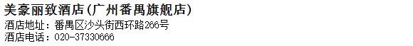 酒店地址:廣州 番禺區 沙頭街西環路266號