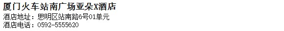 酒店地址:廈門 思明區 站南路6號01單元