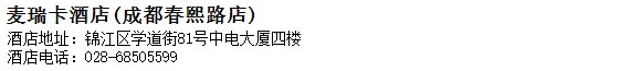 酒店電話:028-68505599