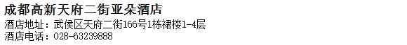 酒店地址:成都 武侯區 天府二街166號1棟裙樓1-4層