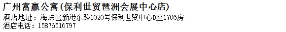 酒店地址:廣州 海珠區 新港東路1020號保利世貿中心D座1706房