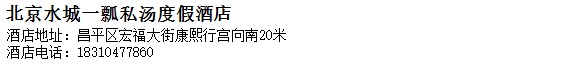 酒店地址:北京 昌平區 宏福大街康熙行宮向南20米