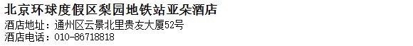 酒店地址:北京 通州區 云景北里貴友大廈52號