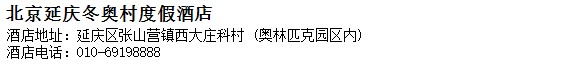 酒店地址:北京 延慶區 張山營鎮西大莊科村 (奧林匹克園區內)