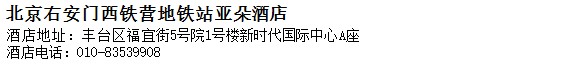 酒店地址:北京 豐臺區 福宜街5號院1號樓新時代國際中心A座