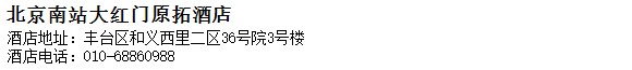 酒店地址:北京 豐臺區 和義西里二區36號院3號樓