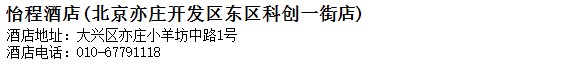 酒店地址:北京 大興區 亦莊小羊坊中路1號