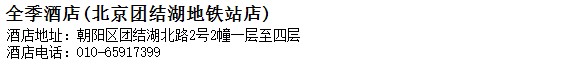 酒店地址:北京 朝陽區 團結湖北路2號2幢一層至四層