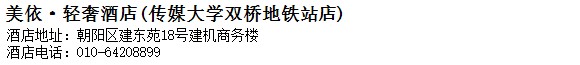 酒店地址:北京 朝陽區 建東苑18號建機商務樓