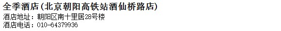酒店地址:北京 朝陽區 南十里居28號樓
