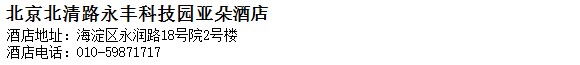 酒店地址:北京 海淀區 永潤路18號院2號樓