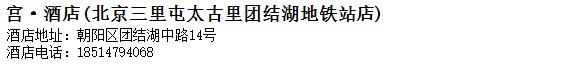 酒店地址:北京 朝陽區 團結湖中路14號