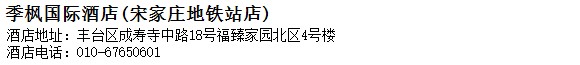 酒店地址:北京 豐臺區 成壽寺中路18號福臻家園北區4號樓