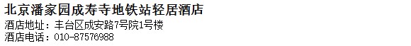 酒店地址:北京 豐臺區 成安路7號院1號樓
