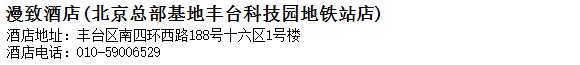酒店地址:北京 豐臺區 南四環西路188號十六區1號樓