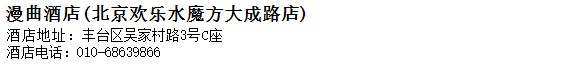 酒店地址:北京 豐臺區 吳家村路3號C座