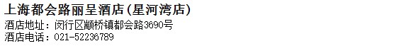 酒店地址:上海 閔行區 顓橋鎮都會路3690號