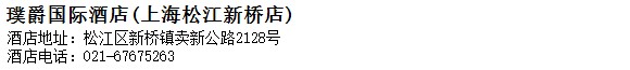 酒店地址:上海 松江區 新橋鎮賣新公路2128號
