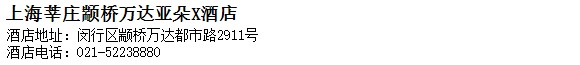 酒店地址:上海 閔行區 顓橋萬達都市路2911號