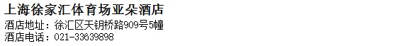 酒店地址:上海 徐匯區 天鑰橋路909號5幢
