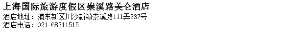 酒店地址:上海 浦東新區 川沙新鎮崇溪路111弄237號