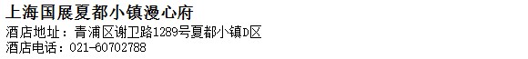 酒店地址:上海 青浦區 謝衛路1289號夏都小鎮D區