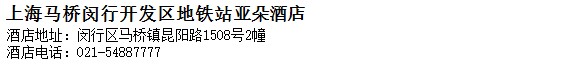 酒店地址:上海 閔行區 馬橋鎮昆陽路1508號2幢