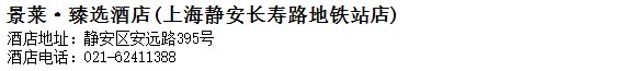 酒店地址:上海 靜安區 安遠路395號
