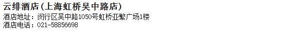 酒店地址:上海 閔行區 吳中路1050號虹橋亞繁廣場1樓