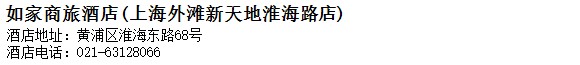 酒店地址:上海 黃浦區 淮海東路68號