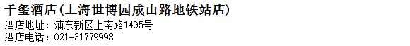 酒店地址:上海 浦東新區 上南路1495號