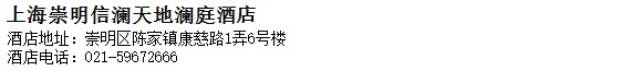 酒店地址:上海 崇明區 陳家鎮康慈路1弄6號樓