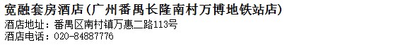 酒店地址:廣州 番禺區 南村鎮萬惠二路113號