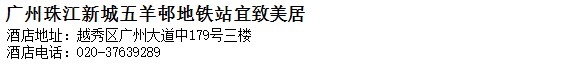 酒店地址:廣州 越秀區 廣州大道中179號三樓