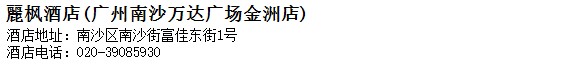 酒店地址:廣州 南沙區 南沙街富佳東街1號