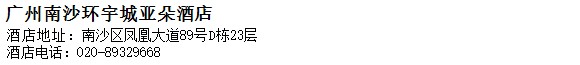 酒店地址:廣州 南沙區 鳳凰大道89號D棟23層
