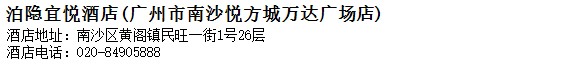 酒店地址:廣州 南沙區 黃閣鎮民旺一街1號26層