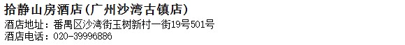 酒店地址:廣州 番禺區 沙灣街玉樹新村一街19號501號